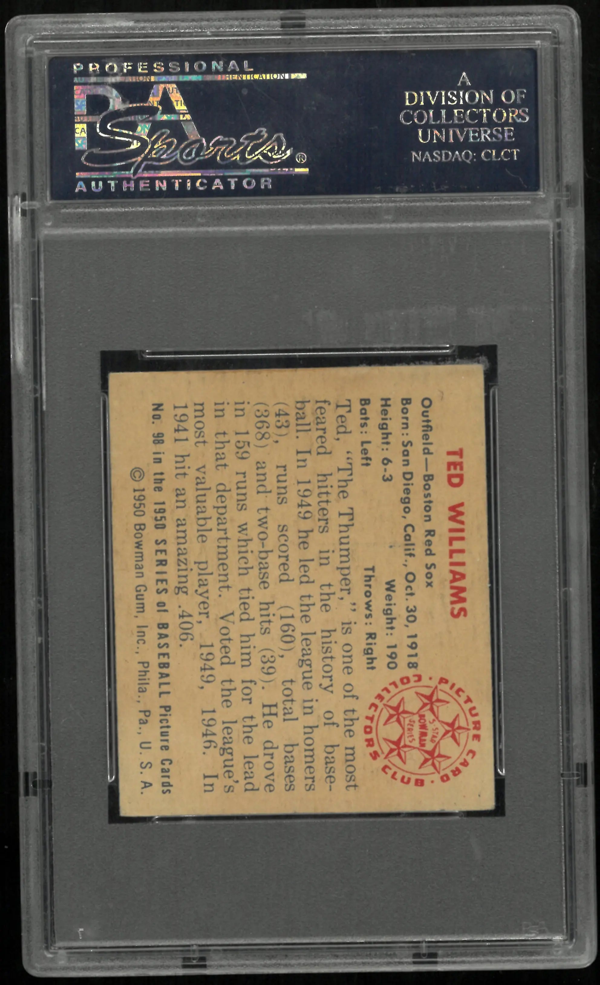 1950 Bowman Ted Williams #98 PSA 4 VG-EX Boston Red Sox