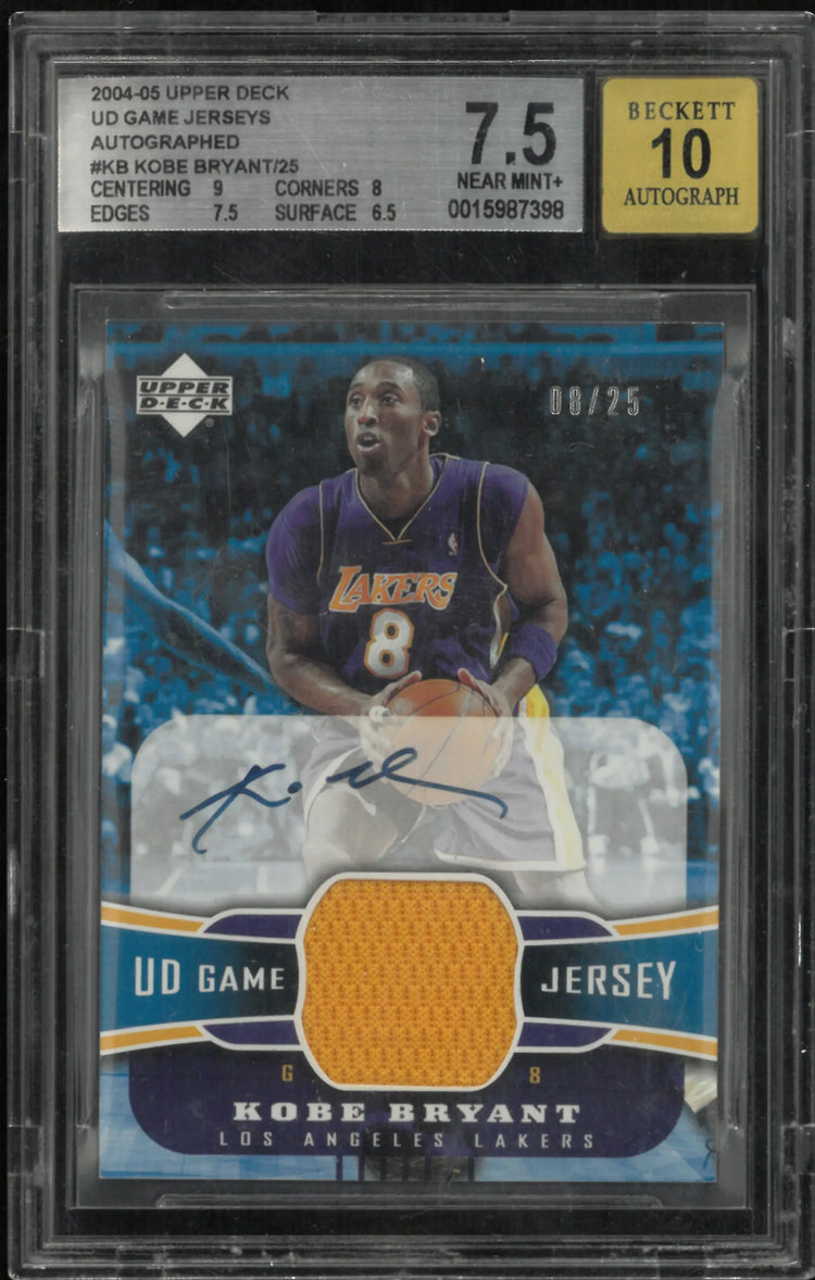 2004 Upper Deck UD Game Jersey Autograph Auto Kobe Bryant 8/25 BGS 7.5 Auto 10