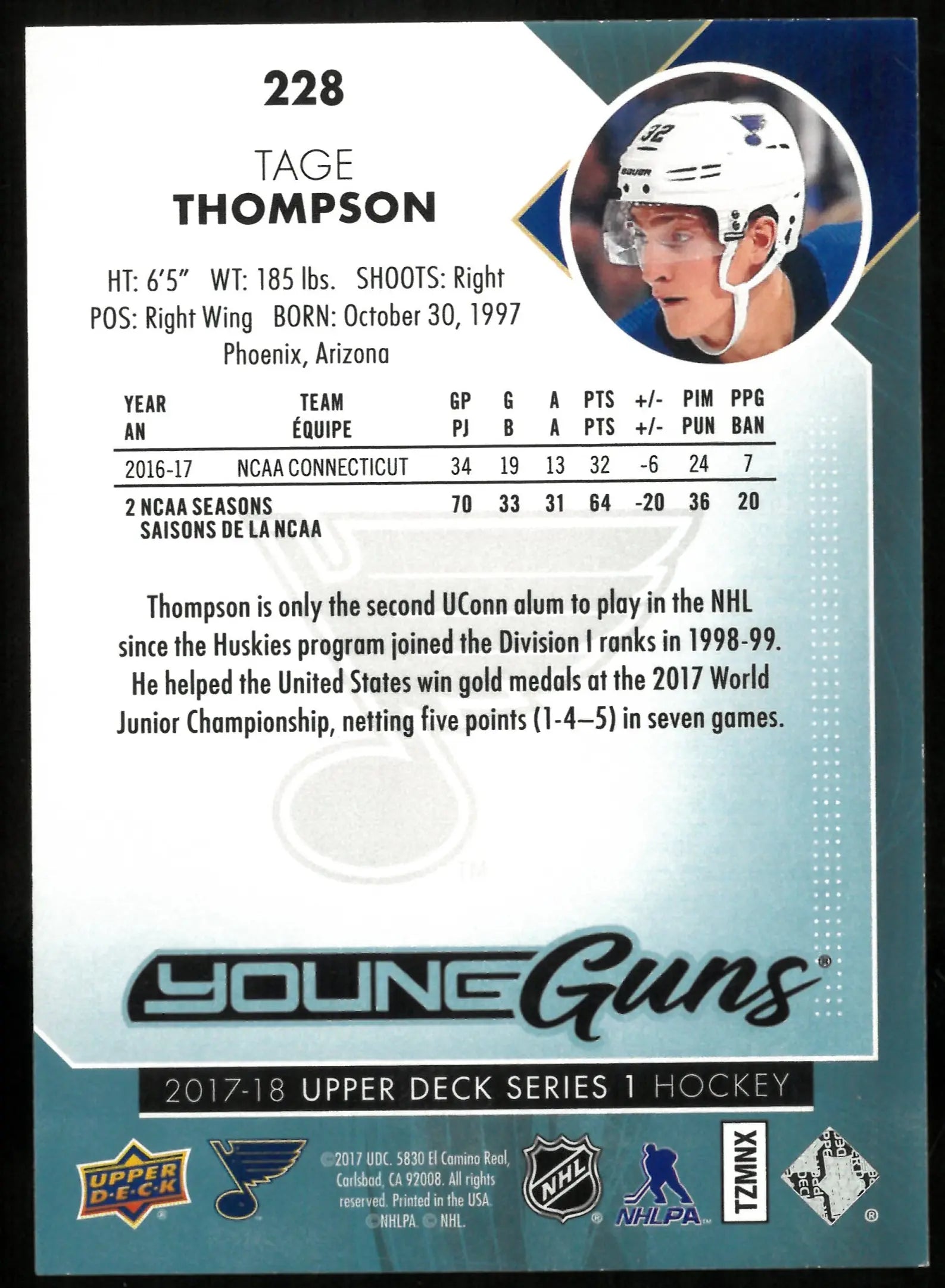 2017-18 Upper Deck Series 1 Young Guns Rookie Tage Thompson