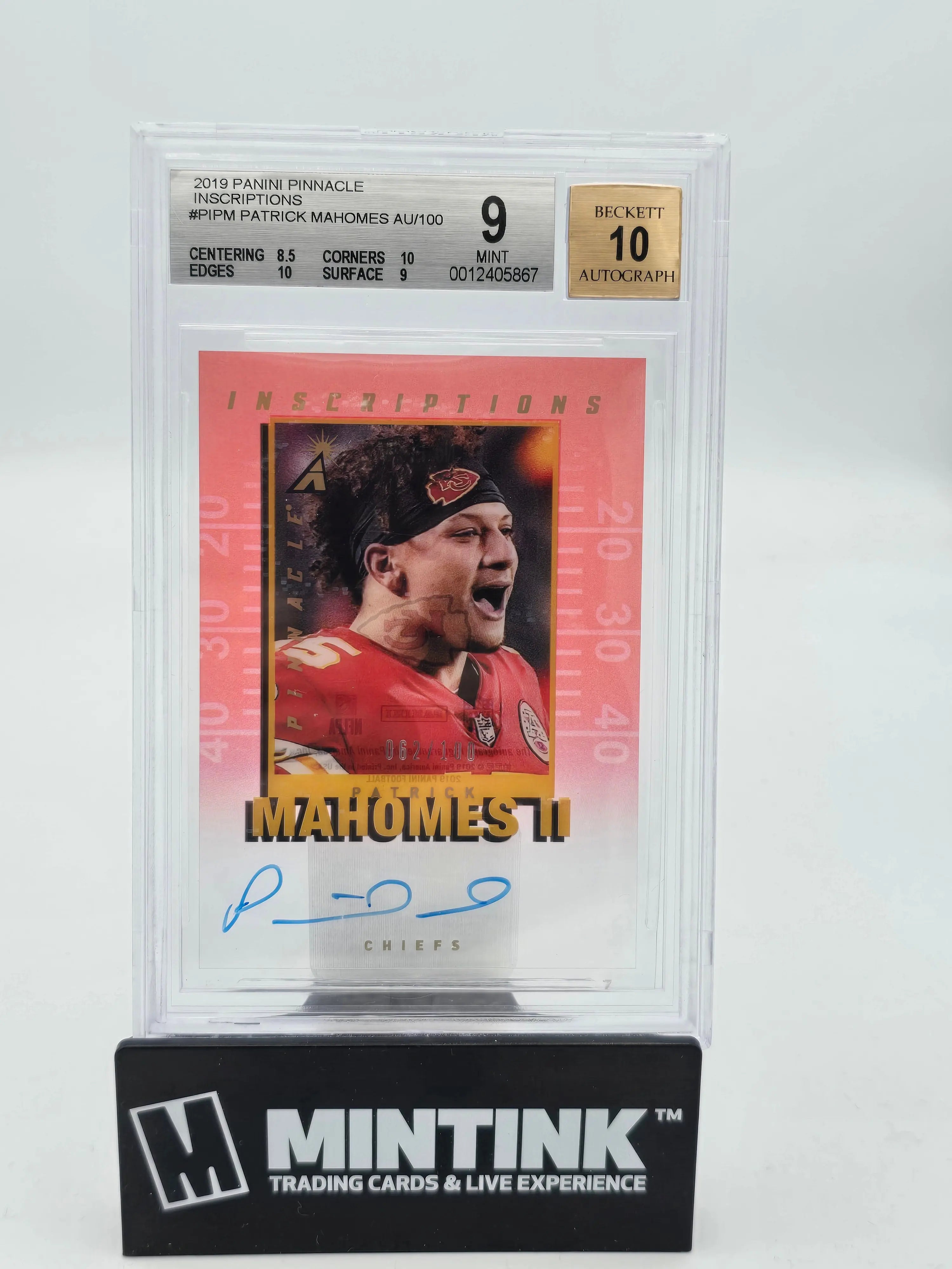 Discover the 2019 Panini Pinnacle Clear Inscriptions Auto Patrick Mahomes II BGS 9 /100
