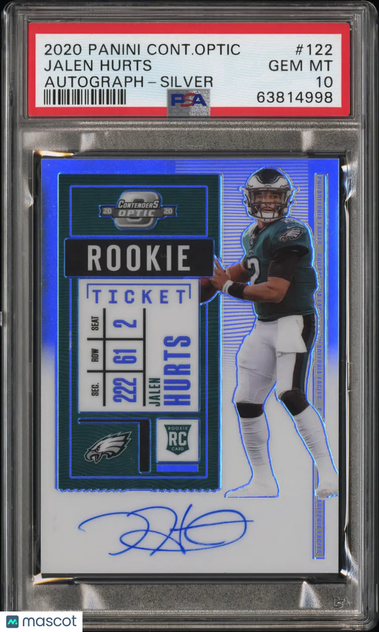 2020 Panini Contenders Optic Jalen Hurts RC Rookie Ticket Auto Silver PSA 10