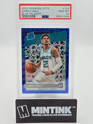Looking to buy a Lamelo Ball Blue Velocity rookie card? This 2020 Panini Donruss Optic Lamelo Ball Rated Rookie Blue Velocity PSA 10 is a must-have for any serious collector or investor. With its pristine PSA 10 grading, this card is not just a collectible; it's a valuable Lamelo Ball Rated Rookie card investment.