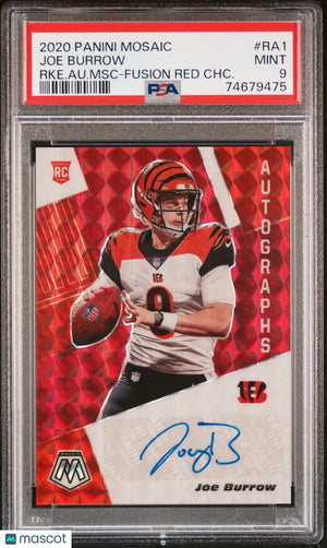 2020 Panini Mosaic Football Rookie Auto Fusion Red Choice Joe Burrow PSA 9