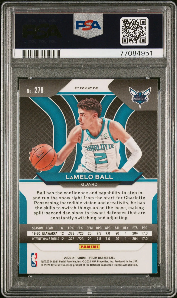 The Panini Prizm LaMelo Ball RC card captures the essence of this rising star. With its high PSA 9 rating, this card is a testament to Ball's potential and a great investment for the future.