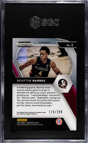 2021-22 Panini Prizm Draft Picks Scottie Barnes RC Red Prizm SGC 10 170/299