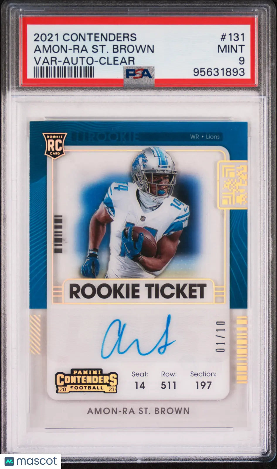 You are purchasing a 2021 Panini Contenders Amon-Ra ST. Brown Clear Rookie Ticket Auto PSA 9 01/10 . You will receive the exact card in the photographs. Thank you for looking. Listed With Mascot.