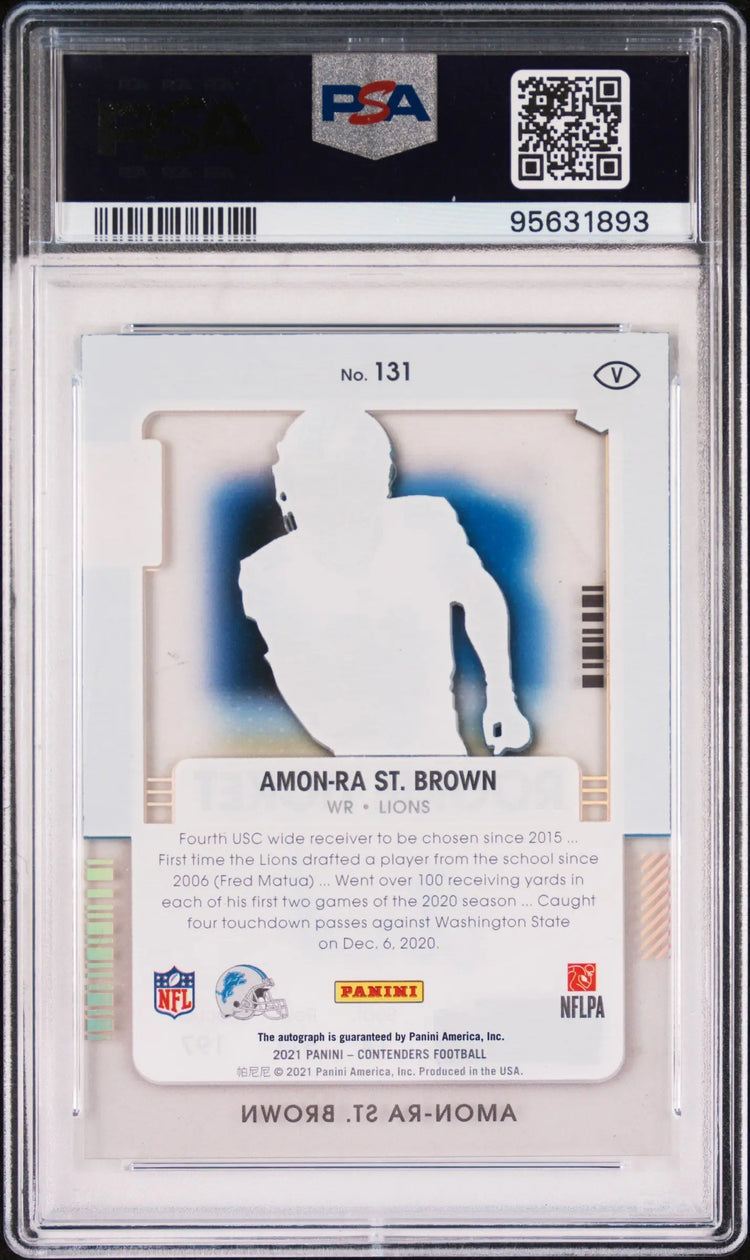 2021 Panini Contenders Amon-Ra ST. Brown Clear Rookie Ticket Auto PSA 9 01/10