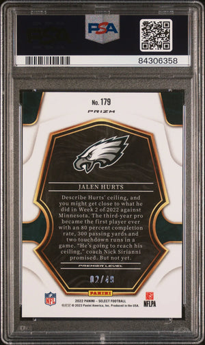 2022 Panini Select Football Jalen Hurts Red Disco Prizm PSA 9 /49 #179