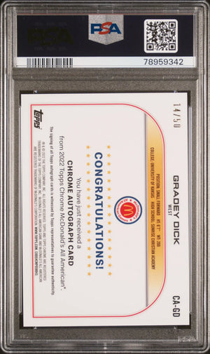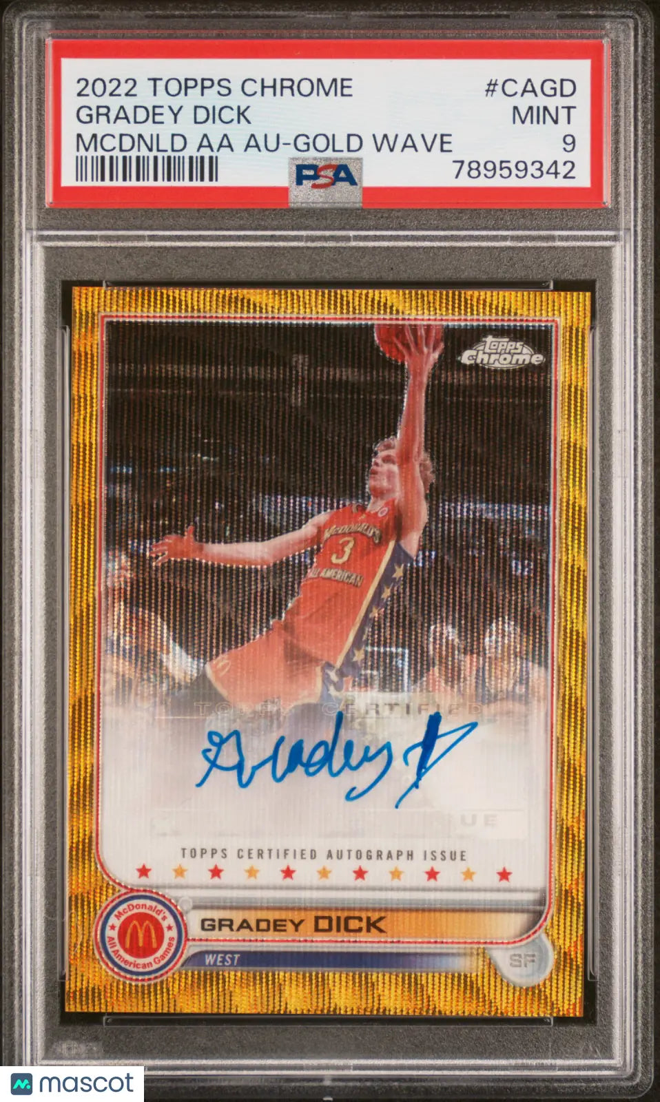 2022 Topps Chrome Mcdonald's All-American Gradey Dick Gold Wave Auto PSA 9 /50