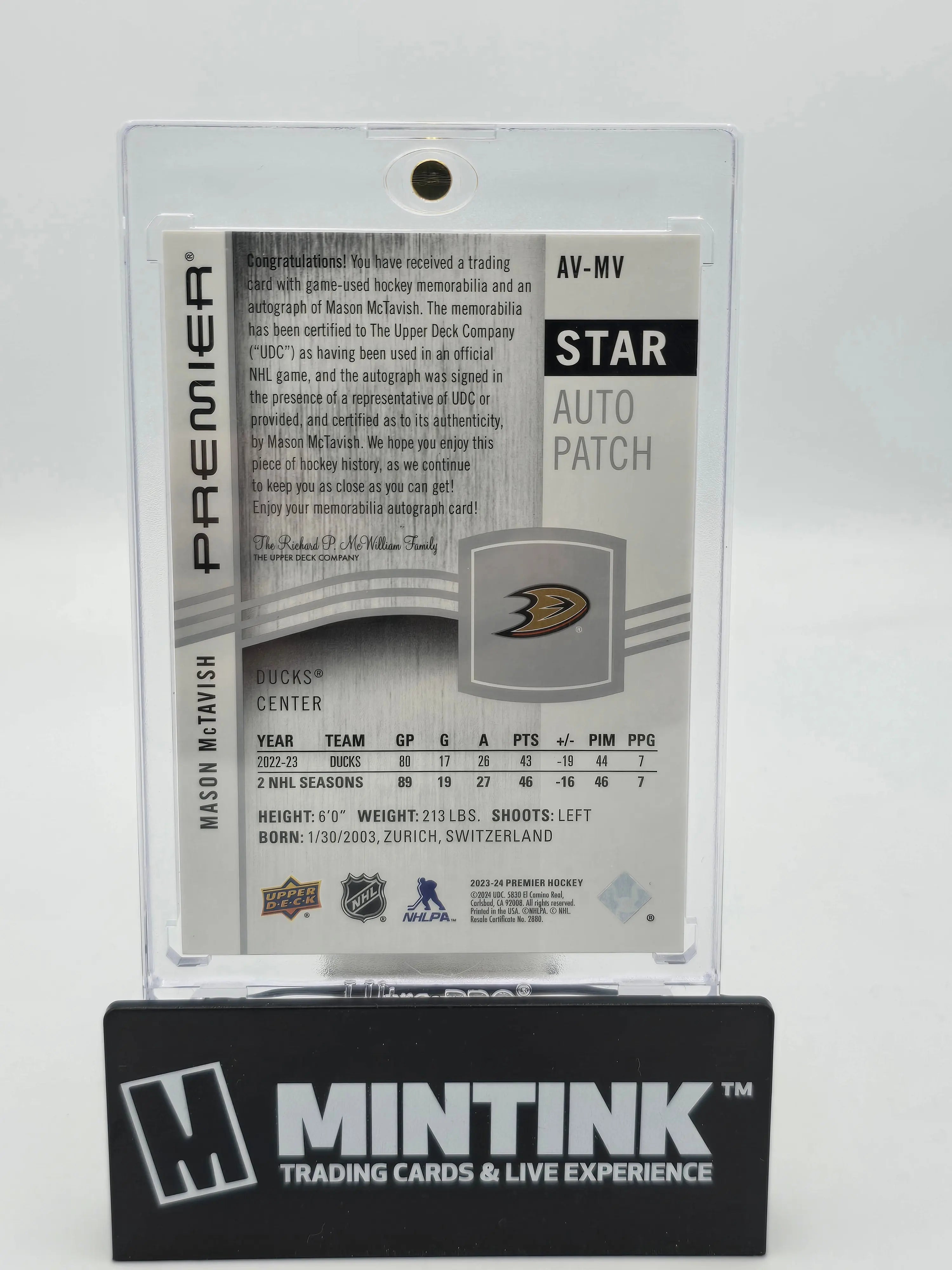 The Upper Deck Premier Hockey Auto Patch series is renowned for its high-quality cards and exclusive features. The Mason McTavish card is no exception. With its stunning design and limited availability, it's a card that stands out in any collection.