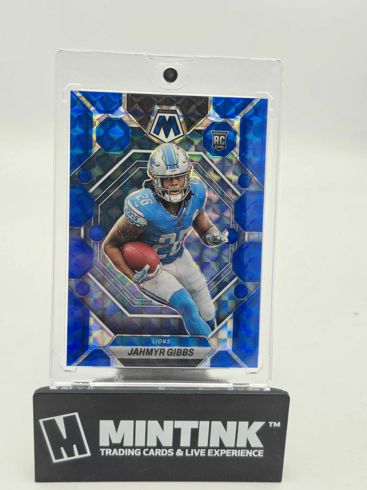 Discover the 2023 Panini Mosaic Football Jahmyr Gibbs RC Rookie Blue Mosaic /99