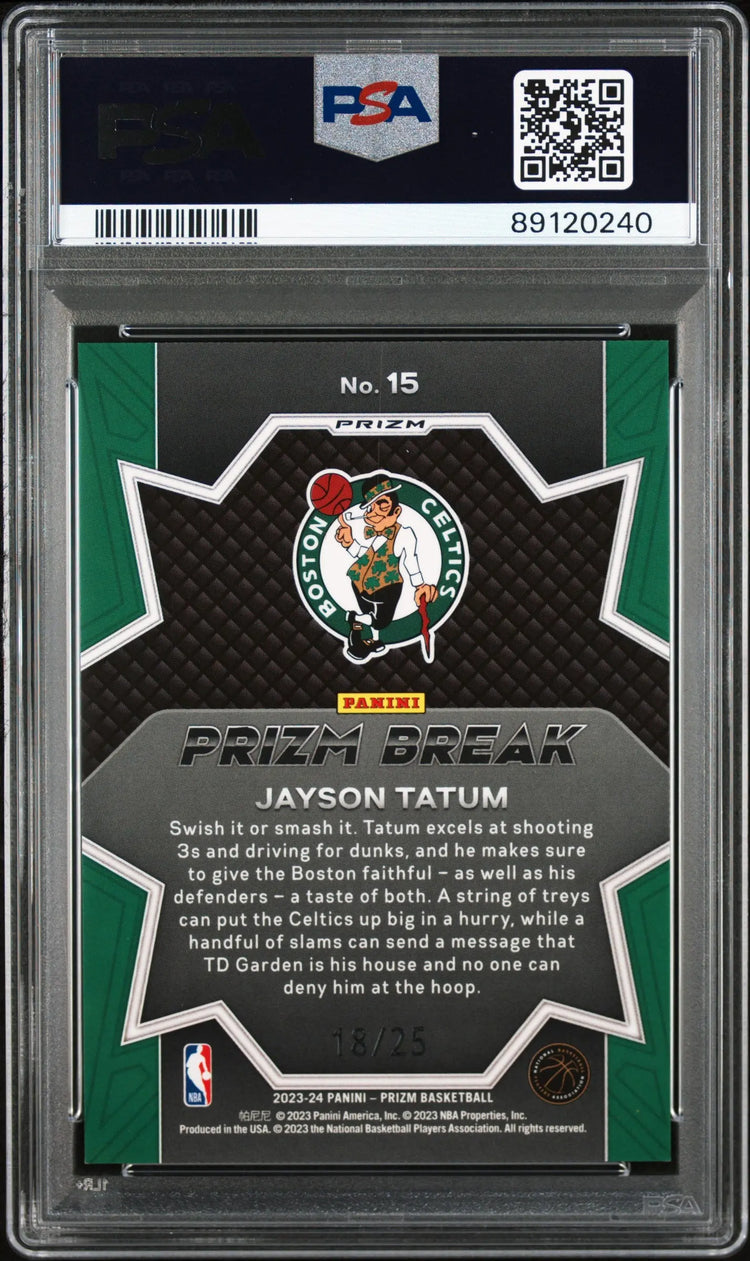 You are purchasing a 2023 Panini Prizm Jayson Tatum Prizm Break Mojo PSA 10 /25. You will receive the exact card in the photographs. Thank you for looking. Listed With Mascot.