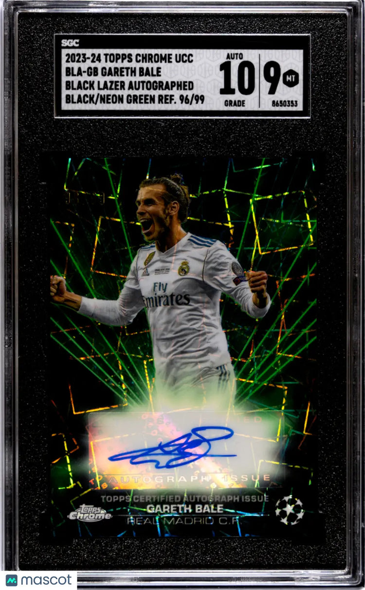 2023 Topps Chrome UCC Gareth Bale Black Lazer Neon GreenRefractor Auto SGC 9 /99