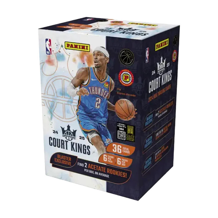 Experience the thrill of the NBA season with the 2024-25 Panini Court Kings Basketball International Blaster Box. This unique, art-based collection offers an exciting blend of exclusive rookies, inserts, and parallels.