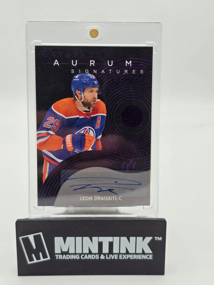 Discover the 2024-25 Upper Deck Artifacts Hockey Leon Draisaitl Purple Aurum Signatures Auto 1/1