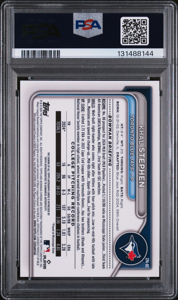 2024 Bowman Draft Chrome Prospect Auto Khal Stephen RC Gold Wave /50 PSA 10