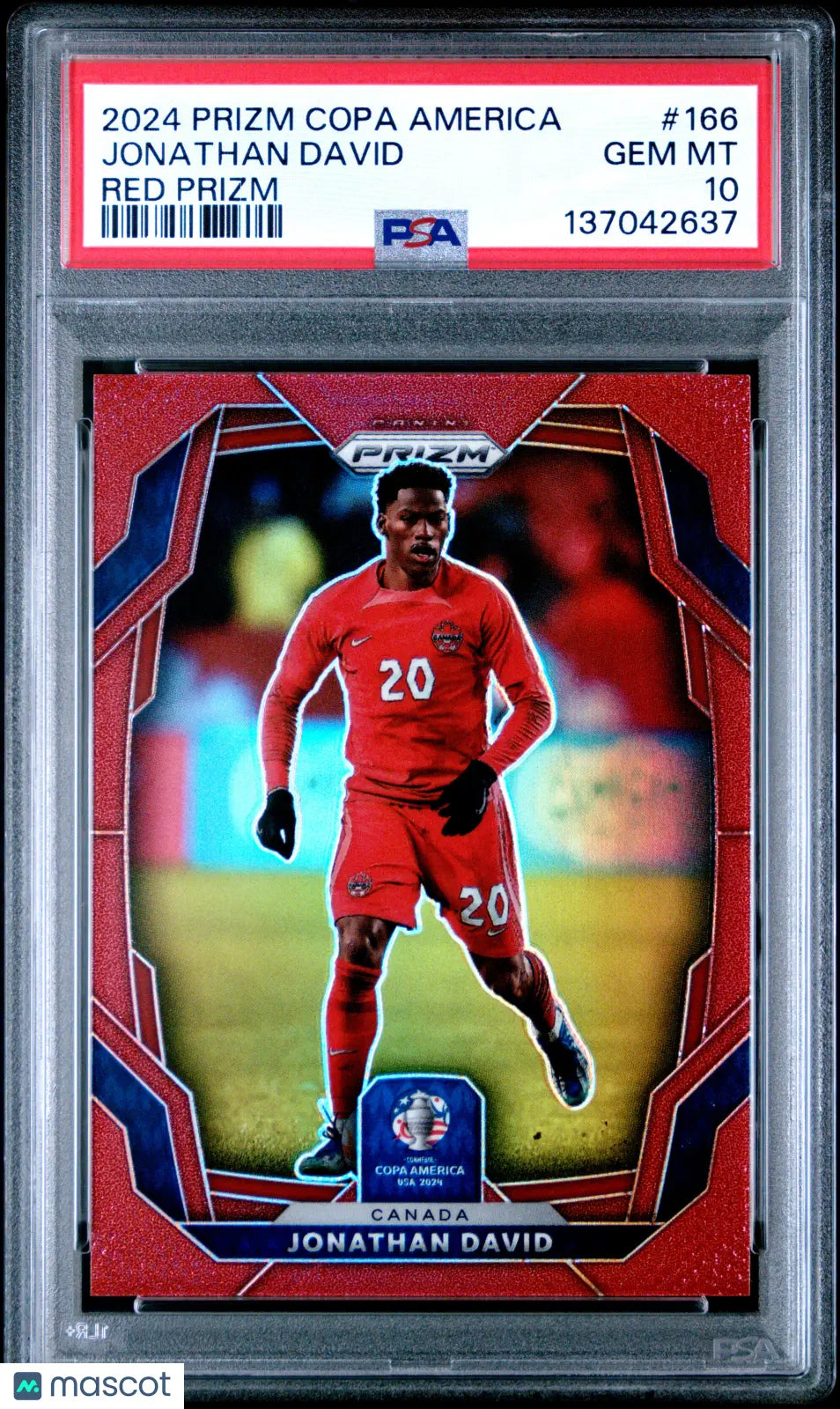 You are purchasing a 2024 Panini Prizm Conmebol Copa America Jonathan David #166 Red PSA 10. You will receive the exact item in the photographs. Thank you for looking. Listed With Mascot.