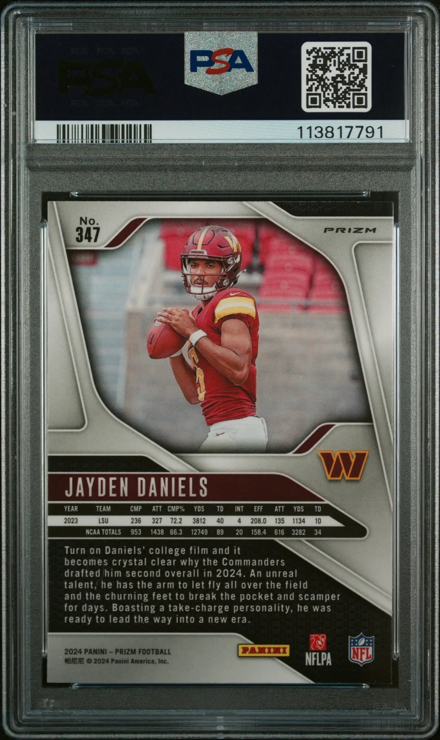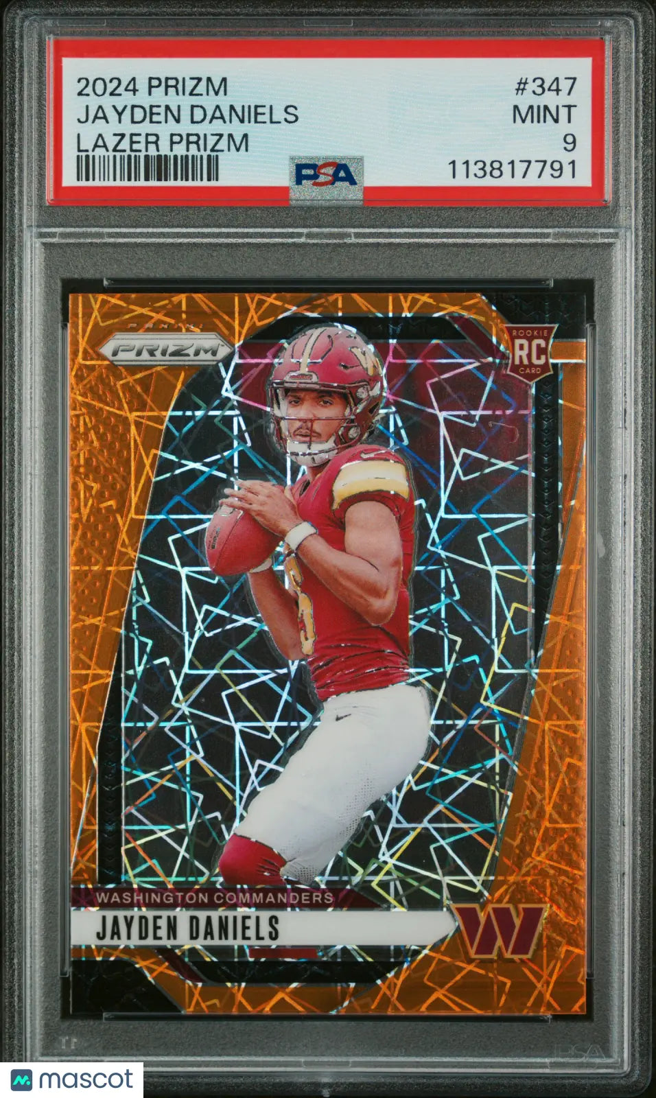 You are purchasing a 2024 Panini Prizm Football Jayden Daniels RC Rookie Orange Lazer PSA 9. You will receive the exact item in the photographs. Thank you for looking. Listed With Mascot.