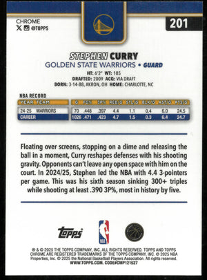 2025 Topps Chrome Basketball Purple Wave Refractor Stephen Curry /75