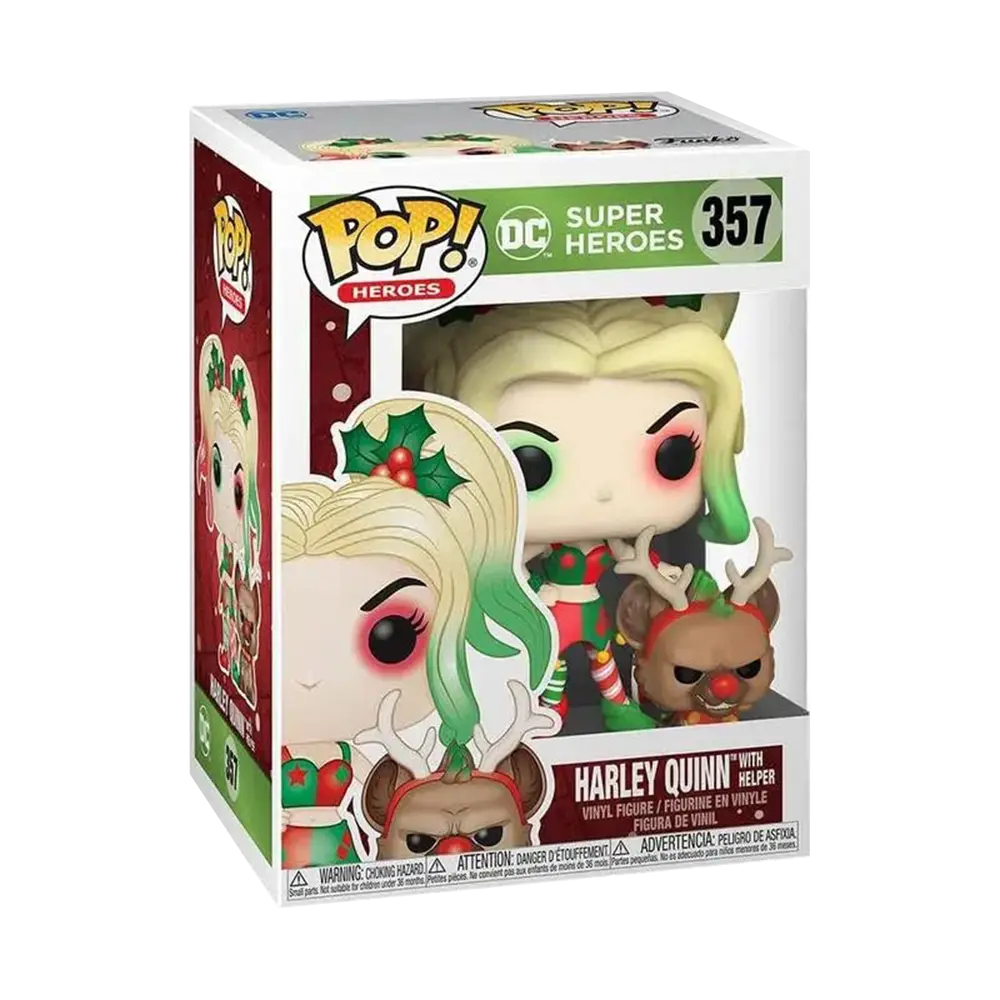 This DC Comics Holiday Harley Quinn with Helper Funko Pop! Vinyl comes packaged in a window displayed box and measures approximately 3-3/4 inches tall.