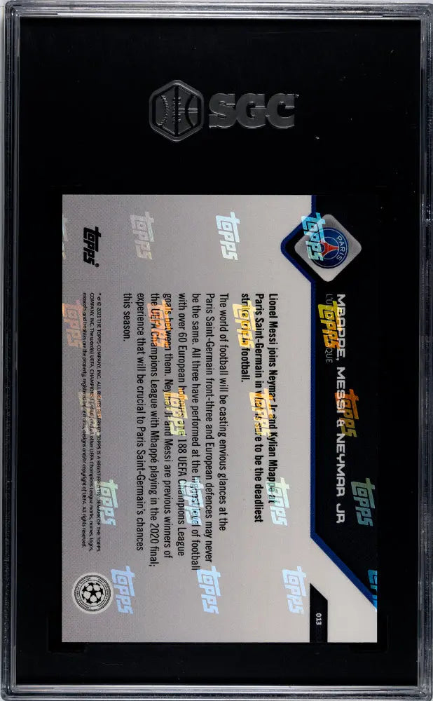 Neymar JR. Messi Mbappe #013 SGC 10 2021 Topps Now Champions League