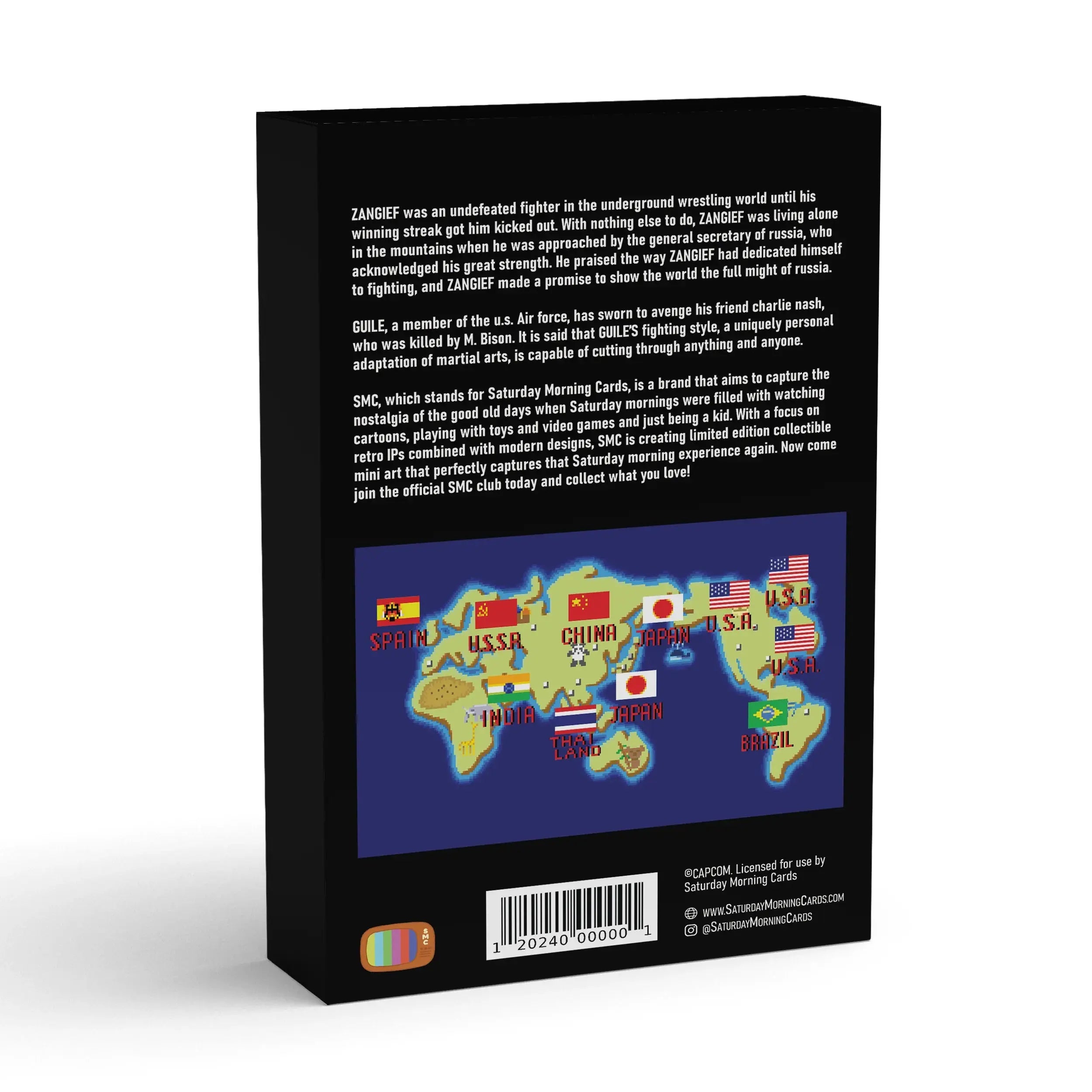 Step into the world of Street Fighter with our exclusive Street Fighter 2 Saturday Morning Cards. This unique set features a dual card box, spotlighting the iconic characters of Champion Edition Guile and Zangief. A must-have for any Street Fighter fan or collector.