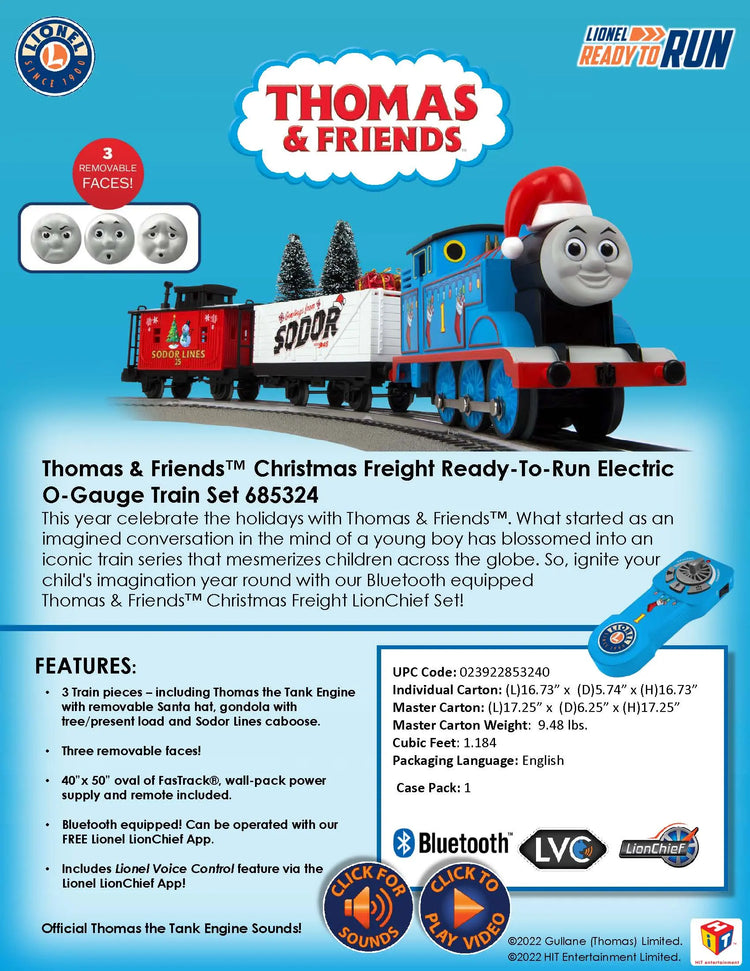 Ignite your child's imagination this holiday season with the Thomas and Friends Christmas Trainset. This iconic O-Gauge Ready to Run Trainset is more than just a toy, it's a gateway to a world of adventure and creativity. Now equipped with Bluetooth, the Thomas & Friends Christmas Freight LionChief Set is ready to bring joy and excitement to your home.